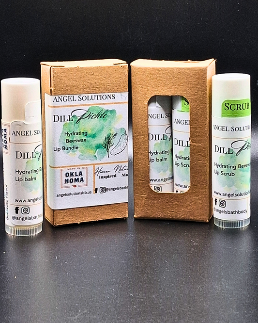 Dill Pickle Lip Care Bundle, lip balm and lip scrub set, nourish, smooth, exfoliate and protect